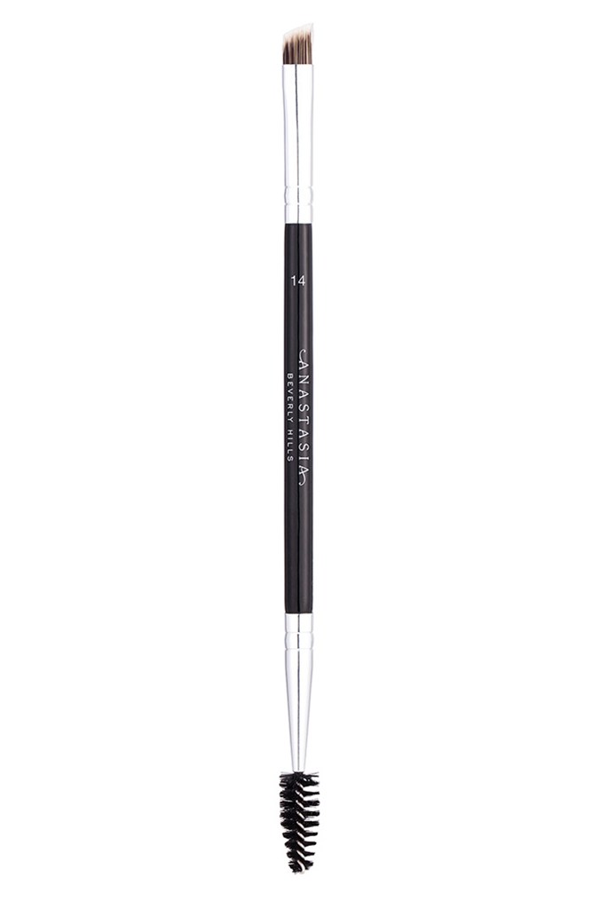 Anastasia Beverly Hills #14 Dual-Ended Firm Detail Brush: “This stiff brow brush helps deliver the right amount of brow powder, cream, gel or wax, making application really easy. I finish with the spoolie to blend it out for a natural look.”