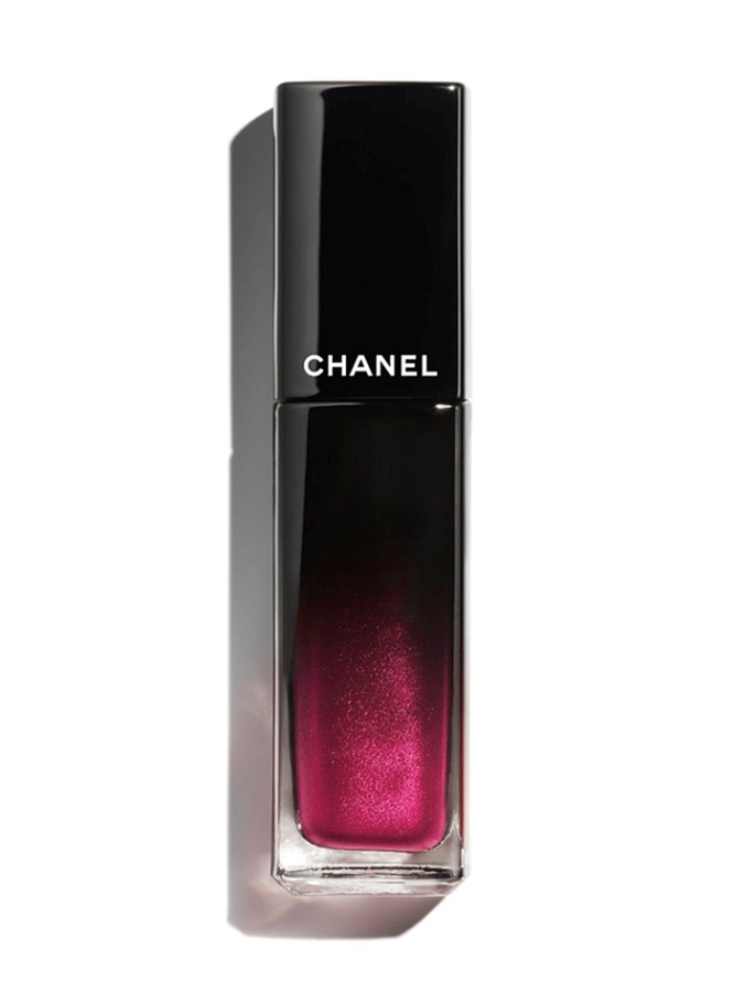 The cherry on top of this rather elaborate lip look is a feather-light layer of the Chanel Rouge Allure Laque Ultrawear Shine Liquid Lip Colour in 'Cristal Pink' ($72 from David Jones).