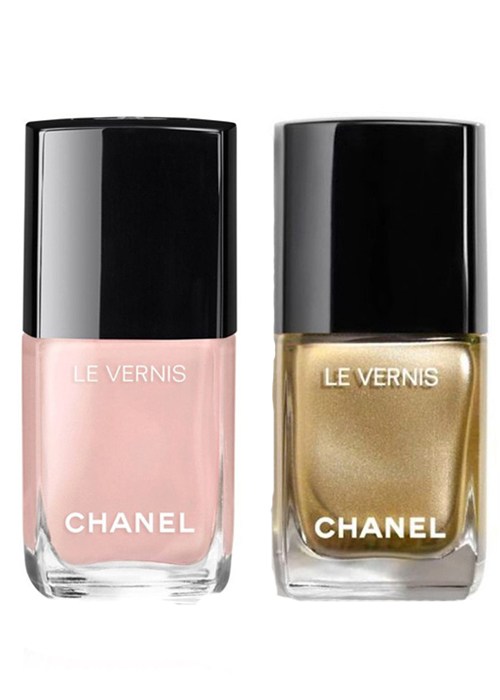 Nail file, nail polish remover, Chanel Le Vernis 167 Ballerina, Chanel Le Vernis Chaine d’Or and a top coat.