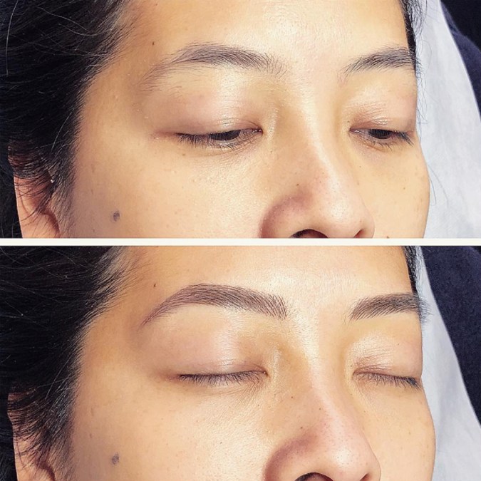 “Microblading is a semi-permanent cosmetic tattoo procedure whereby fine strokes are topically etched into the outer layers of the brow area to mimic the effects are real hairs,” explains “Your ultimate shape is designed to the correct proportions of your face.”