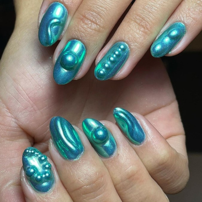 And for Victoria Houllis of Mannequin Hands fame, it’s all going to be about 3D design.. Artists are playing around with all the different ways they can incorporate texture,” she says. “Think organic nature-inspired shapes and raindrops.”
