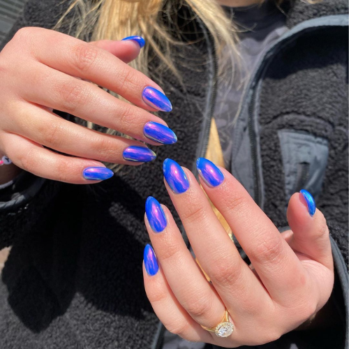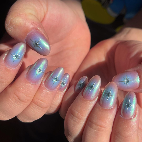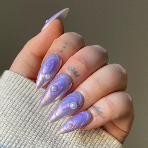Never one to miss a trend, you’ll be swooning over this nostalgic icy manicure. Digital lavender nails are the perfect balance of luxury and simplicity, and a seriously chic update from Hailey Bieber’s glazed donut nails (RIP). The trend really taps into your nostalgic side, with the holographic hue taking inspo from the iconic frosted makeup of the ‘00s. And can we talk about how serene that lavender shade is? A Taurean's dream.