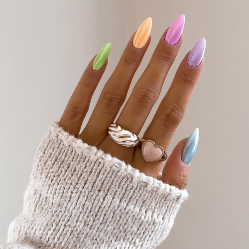 Mismatched nails (AKA pick ‘n’ mix) are the exact kind of chaotic good a Gemini needs in their life. You’re balancing multiple hobbies, friendship groups and moods (let’s be honest), and what better way to express all of that than through your nail art? Plus, we all know your spontaneity and adorable erraticism makes decision-making a bit of a challenge – but thankfully, with mismatched nail art, you can bring all your brilliant ideas to life in one manicure.