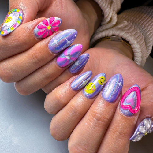 You’re a dreamer, obsessed with nostalgic memories and trends. So why not bring your core memories to life with a Y2K nail makeover? The beauty of this trend is that it can be as bold or minimalist as you desire. Opt for a dreamy jelly nail design or go all out with glitter, chrome and bedazzlements (looking at you, lava lamp nails). The beauty of Y2K nails is that you get full creative control so you can let your artistic side take the reins.
