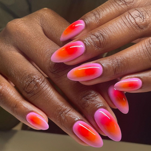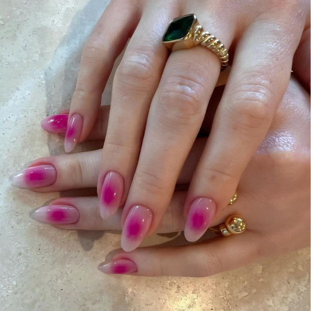 The comeback of aura nails is almost as exciting as the comeback of Marc Jacobs Beauty in our books. "Every single client of mine is asking for aura nails, even Christina Aguilera,” Ganzorigt says. “She was like, 'you need to find more airbrushed nail designs for me because I love it.' It's not only Christina. So many of my clients are asking for airbrushed nails. I think that's going to be big."