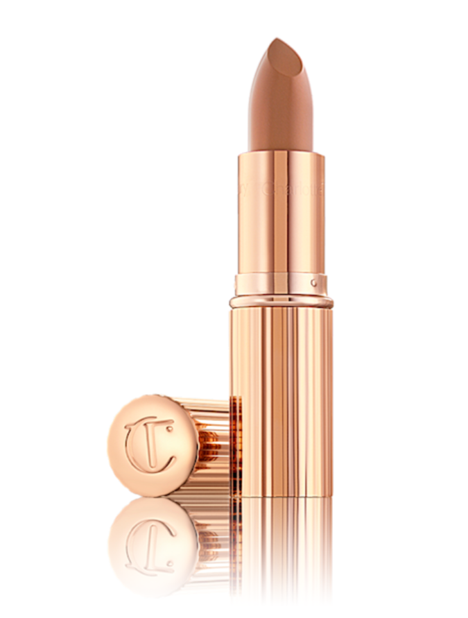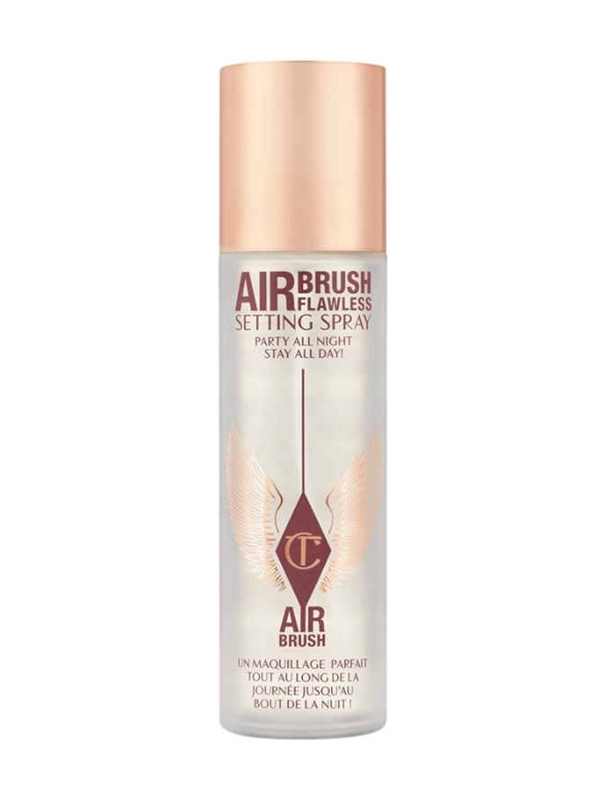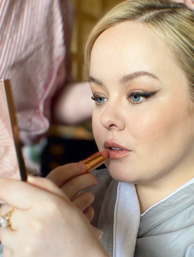 Then for our favourite part of the look — the eye makeup — Breuchard blended Tilbury's Classic Eyeliner Pencil in the shades 'Classic Brown' and 'Black' ($40 from Charlotte Tilbury) outwards towards Coughlan's temples to create a wing that was simultaneously soft and exaggerated. To finish, Coughlan applied a healthy layer of Charlotte Tilbury's K.I.S.S.I.N.G Lipstick in the Audrey Hepburn-inspired shade 'Yes Honey' ($54 from Charlotte Tilbury), and Beuchard misted her makeup with the Charlotte Tilbury Airbrush Flawless Setting Spray ($54 from Charlotte Tilbury).
