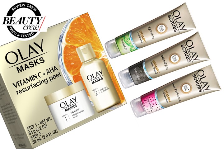 Beauty Crew sent Olay Vitamin C Resurfacing Treatment Mask + AHA Peel Serum Activator, Olay 5-in-1 Vitamin C Scrub Hydrating, Olay 5-in-1 Vitamin C Scrub Detoxifying, and Olay 5-in-1 Vitamin C Scrub Pore Purifying to a panel of women aged 20 to 45 with a range of skin types.