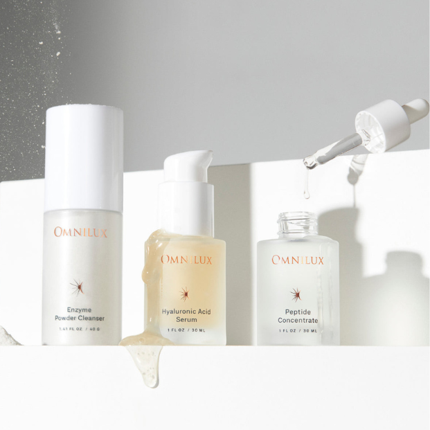 Want to take your results to the next level? The new Omnilux LED Essentials Bundle skin care is designed to enhance the effects of at-home LED treatments. The range includes the Enzyme Powder Cleanser for gentle exfoliation and a deep cleanse, the Hyaluronic Acid Serum to lock in moisture and soothe the skin, and the Peptide Concentrate to reduce fine lines and signs of fatigue.