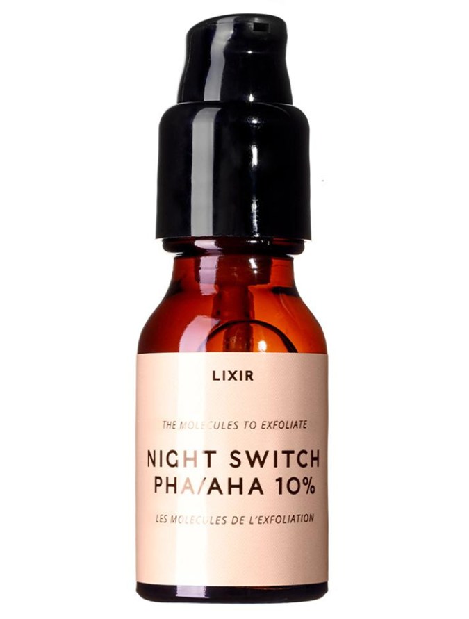 Glow Recipe Avocado Melt Retinol Sleeping Mask ($38 at Mecca); SOME BY MI AHA BHA PHA 30 Days Miracle Toner ($35 at Adore Beauty); and LIXIR Night Switch PHA/AHA 10% Serum ($38 at Sephora).