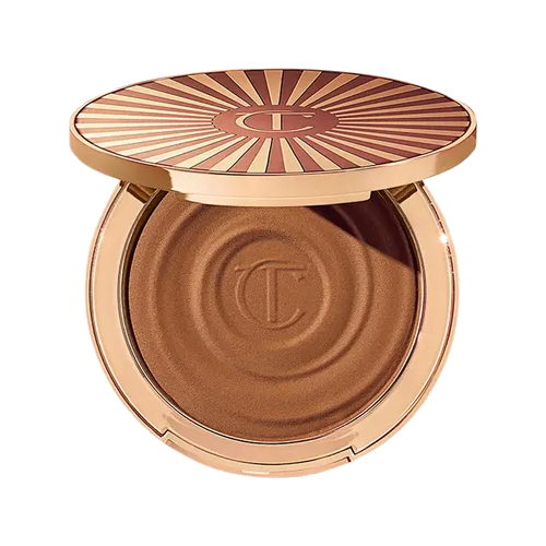 Grossman applied the Chanel Palette Les Beiges in 'Warm' ($121 at David Jones), Typology T20 Tinted Concealer Serum ($44 at Typology), Charlotte Tilbury Beautiful Skin Sun-Kissed Glow Bronzer in 'Medium' ($90 at Charlotte Tilbury) and the Charlotte Tilbury Beauty Light Wand in 'Pinkgasm' ($60 at Charlotte Tilbury) to create the beautiful tonal bronze look. The exact glitter liner used seems to be out of stock, but we'll be sure to let you know if we track it down.