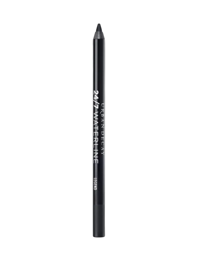 Rather than applying a few coats of mascara, she curls her lashes and uses Urban Decay Cosmetics 247 Waterproof Waterline Eyeliner Pencil in 'Legend' ($39.60 from Cult Beauty) to fill in her waterline, extending it outwards to create a very small wing. Then she drags her finger underneath the line to blend it out, and uses the excess product on her concealer brush to clean things up a bit.