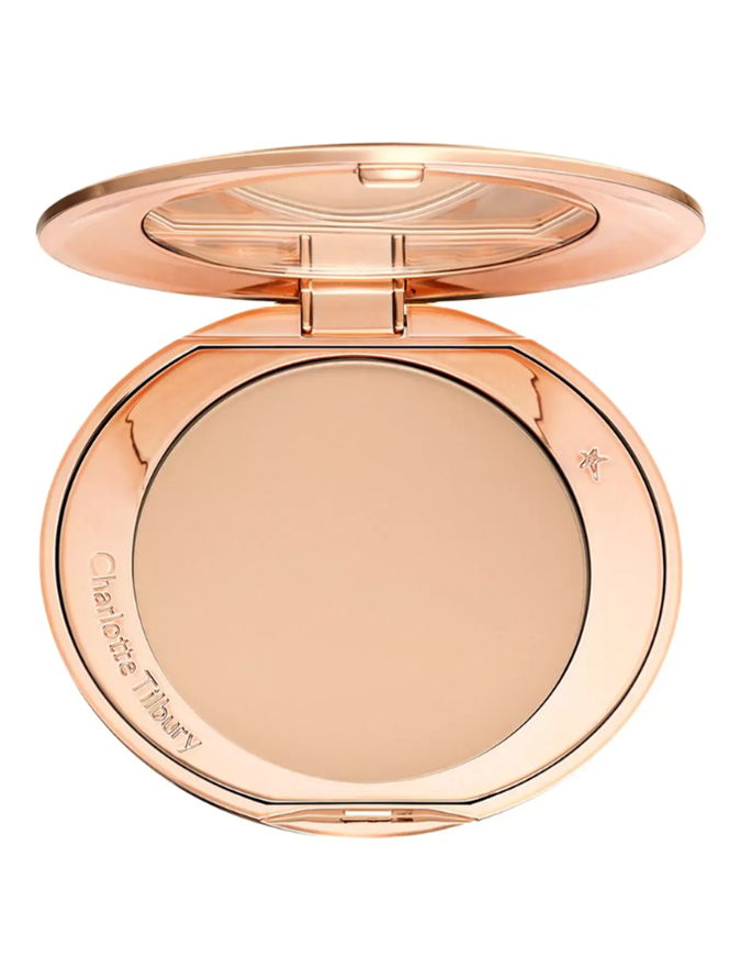 The she sets under her eyes, and around her nose and mouth with the Charlotte Tilbury Airbrush Flawless Finish in 'Fair' ($76 from Charlotte Tilbury).