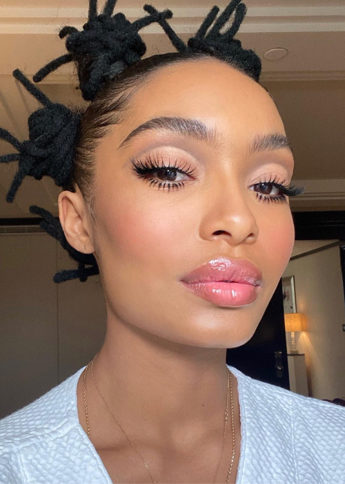 Keep both the eyelid and lower lashline nude, and juxtapose them with dramatic eyelashes. A good pair of false lashes will come in handy here.