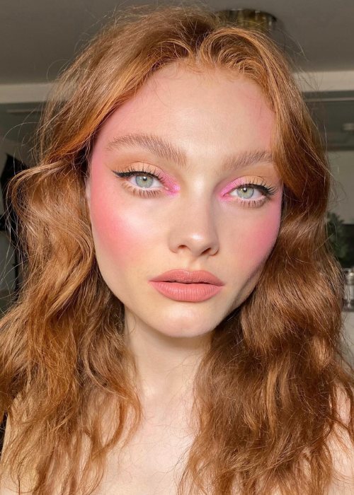 Put that punchy pink eyeshadow you've never touched to good use. A sweep of peach will keep the crease and lower lashline looking fresh while a tightline of black eyeliner balances the dramatic inner corner.