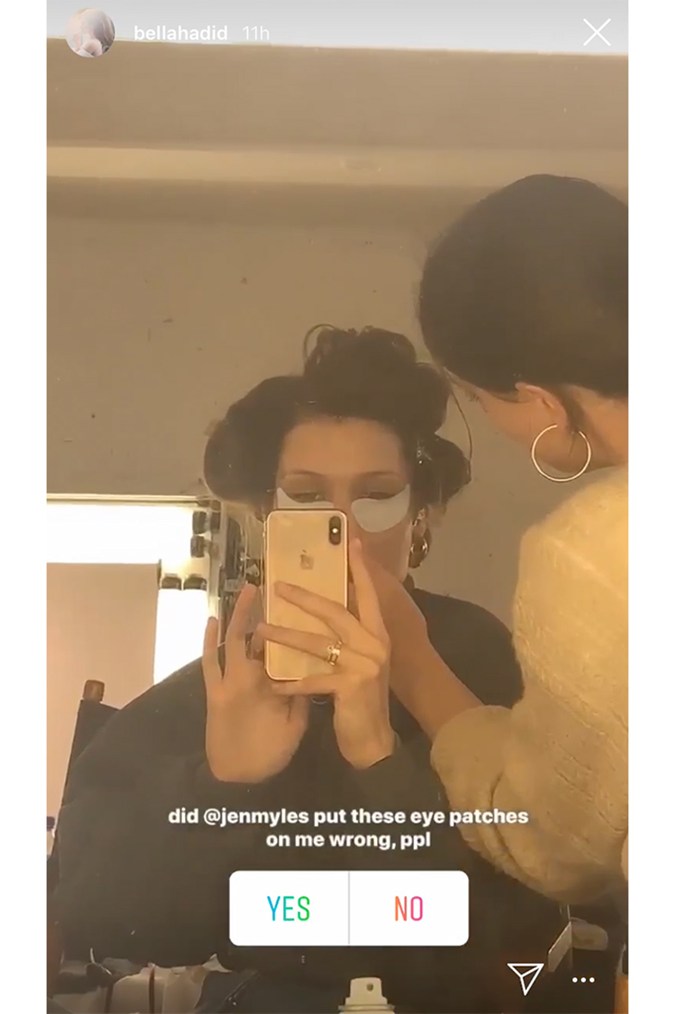 Bella then uploaded another Instagram story with the caption, “I think they are wrong because they are stabbing me”. Meanwhile, Bella’s makeup artist stares quizzically into the mirror checking the positioning of the patches.