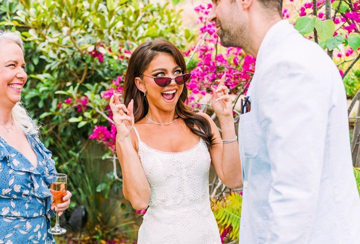 The photos from Sarah Hyland’s wedding have officially arrived and given us the Modern Family reunion we all deserve. But once we got over the fact that Jesse Tyler Ferguson (AKA Mitch of Mitch and Cam) officiated the ceremony and almost the entire cast was in attendance, our next mission was to source the makeup breakdown. Because hot damn, Hyland looked good.