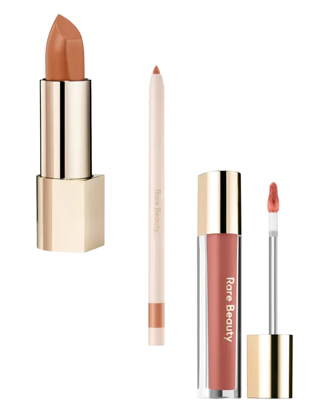 Aside from that switch, Vanngo lined Gomez' lips with the long-lasting Rare Beauty Kind Words Matte Lip Liner in 'Talented' ($29 at Sephora), followed by a Rare Beauty Kind Words Matte Lipstick ($39 at Sephora). And then topped it all off with a glossy swatch of the Rare Beauty Stay Vulnerable Glossy Lip Balm ($39 at Sephora).