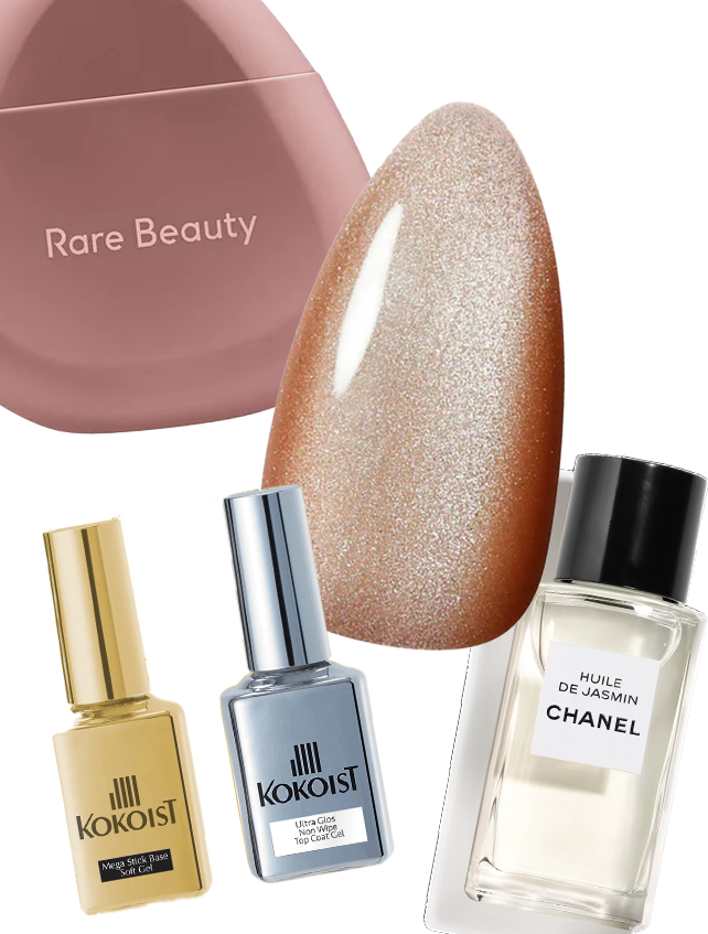 And then to ensure her cuticles and hands were hydrated, Bachik took the Chanel Huile De Jasmin (available in store) across her cuticles and the Rare Beauty Find Comfort Hydrating Hand Cream ($32 at Sephora) over her hands.