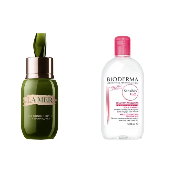 Melting away her base with La Mer’s The Concentrate ($640 at MECCA), Gomez then follows with Bioderma's Sensibio H20 Soothing Micellar Water Cleanser ($20.99 at Chemist Warehouseto remove any remaining residue.