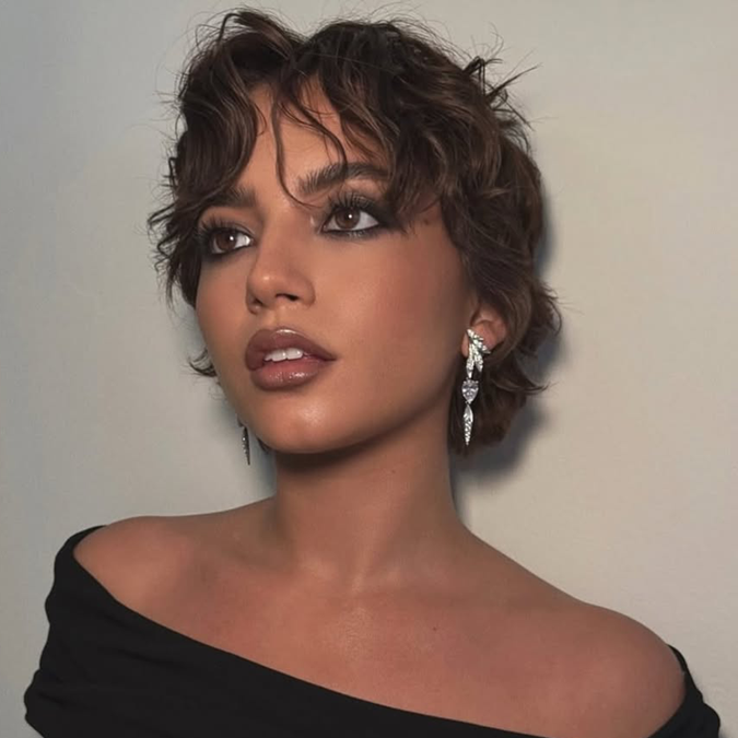 If you’re feeling bold, the curly crop—somewhere between a pixie and a bob—offers a modern, sculptural look that’s equal parts chic and low-maintenance. And yes, a fringe absolutely works with curls: a curly curtain or micro fringe can instantly elevate the cut, giving it that editorial, French-girl ease.