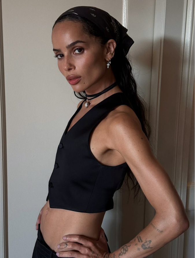 "Hailey Bieber has been spotted tying scarves as tops and head wraps on holiday," she tells us. "Harry Styles incorporates bold printed scarves into his stage outfits, Bella Hadid embraces vintage-inspired neckerchiefs, and Dua Lipa frequently pairs statement scarves with swimwear or festival looks."