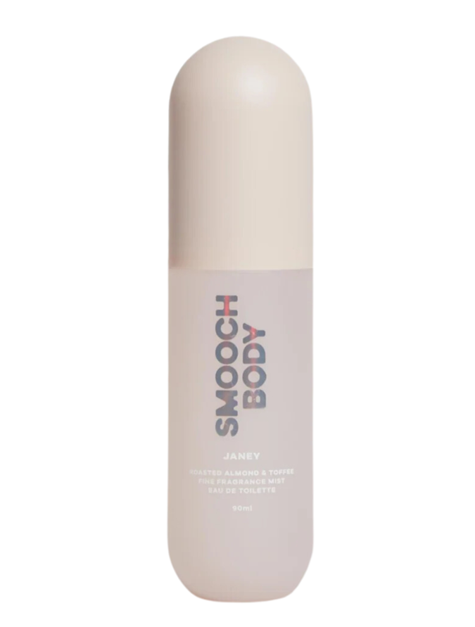 Smooch Body's Janey, on the other hand, will initially smell like roasted almond and toffee, then there'll be hints of white florals, and then the base of the fragrance — creamy vanilla and coconut — will reveal itself.