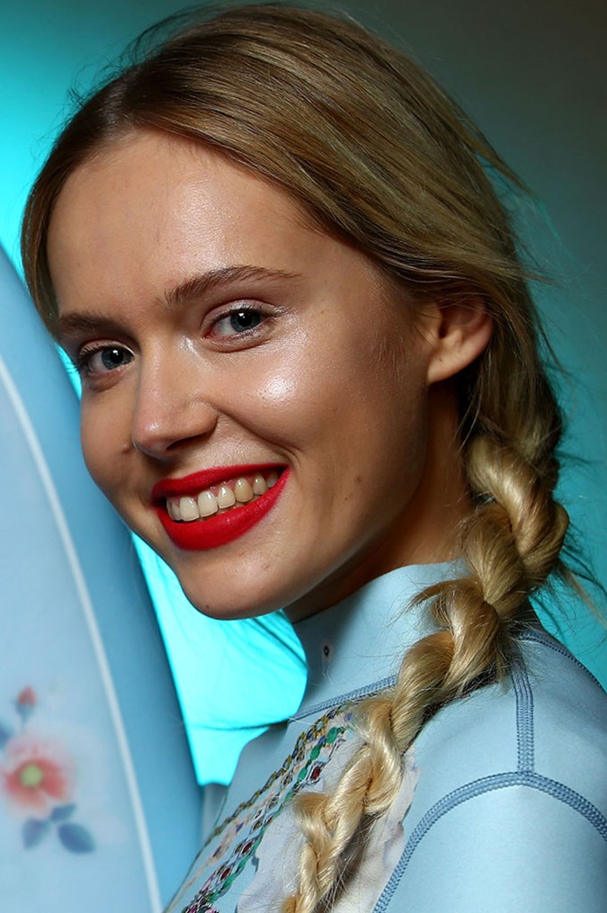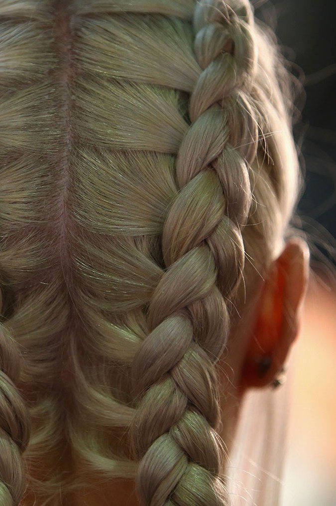 We’ve seen braids hit the runway at NYFW earlier this year, but down-under, things were a little different. Inverted (or Dutch) braids were featured this season, and the look is easy to master if you’re ace at doing your own hair. At Yuxin, Redken’s Hair Director John Pulitano suggested to “start by saturating the roots with Redken’s Rootful 06 Root Lifting Spray for control and touchable fullness”. Then, braid as you would, but take each section across and under the piece in the middle, instead of on top. If you’re a novice at braiding, try the style we saw at Cynthia Rowley. First, divide your ponytail into two, twist each section individually, then around each other to mimic a loose fishtail braid.