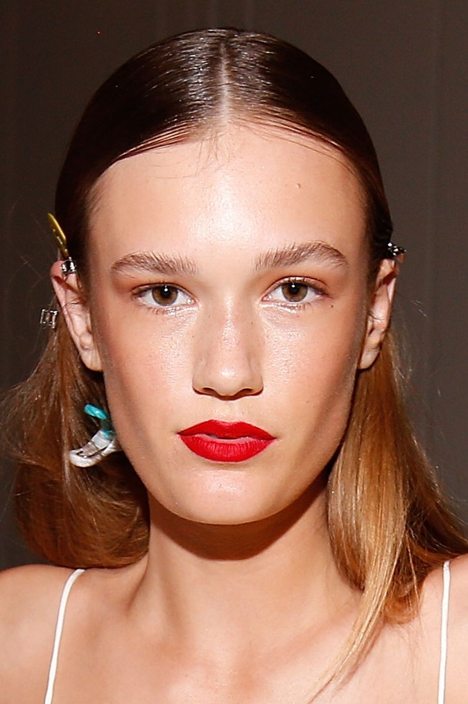 Red lipstick is here to stay, and best of all, there’s a shade to suit every skintone. Our best tip this season is to keep the texture matte - it’s the new cool girl classic trend to try. Want to amp up the intensity? “At Rebecca Vallance, we layered the products on,” says Carol Mackie, Senior Artist of MAC. “First we slicked on a Retro Matte Liquid Lipcolour in Feels So Grand, then we followed with Velvetease Pencil in Anything Goes, and finally we finished it off by pressing Magenta Madness pigment over the top.”