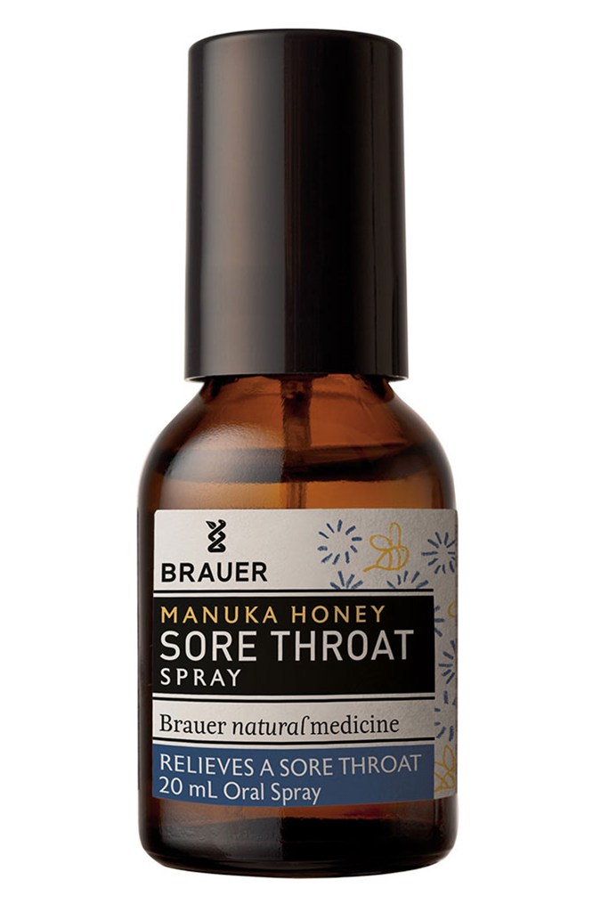 A spritz of Brauer Natural Medicine Manuka Honey Sore Throat Oral Spray may relieve inflammation in the area.