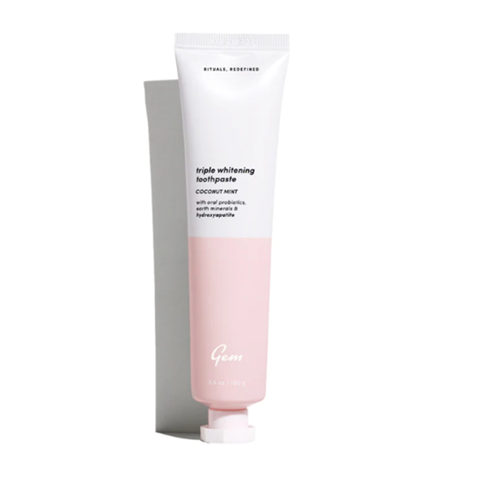 Once you've washed your mask off, hop into the shower and wash away the remaining exfoliator. Next, apply a moisturising (and amazing-smelling) body wash like the Kit Wellness Wash ($34 at MECCA). And if you so require, why not shave and brush your teeth using the Gem Triple Whitening Toothpaste ($15 at Gem) while you're there.