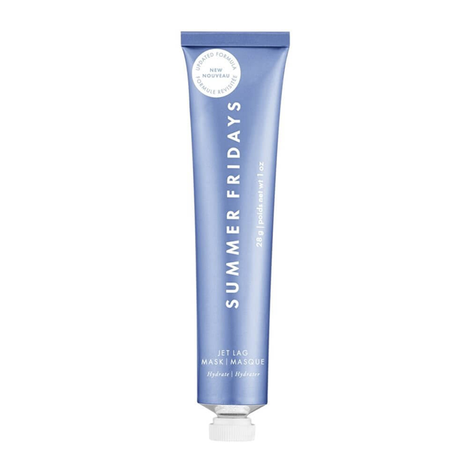 First, cleanse and pat dry your face. Next, apply either a brightening, hydrating or clarifying face mask (depending on whatever your complexion is craving). If you're asking us, we'll be reaching for the Summer Fridays Jet Lag Mask ($43 at MECCA).