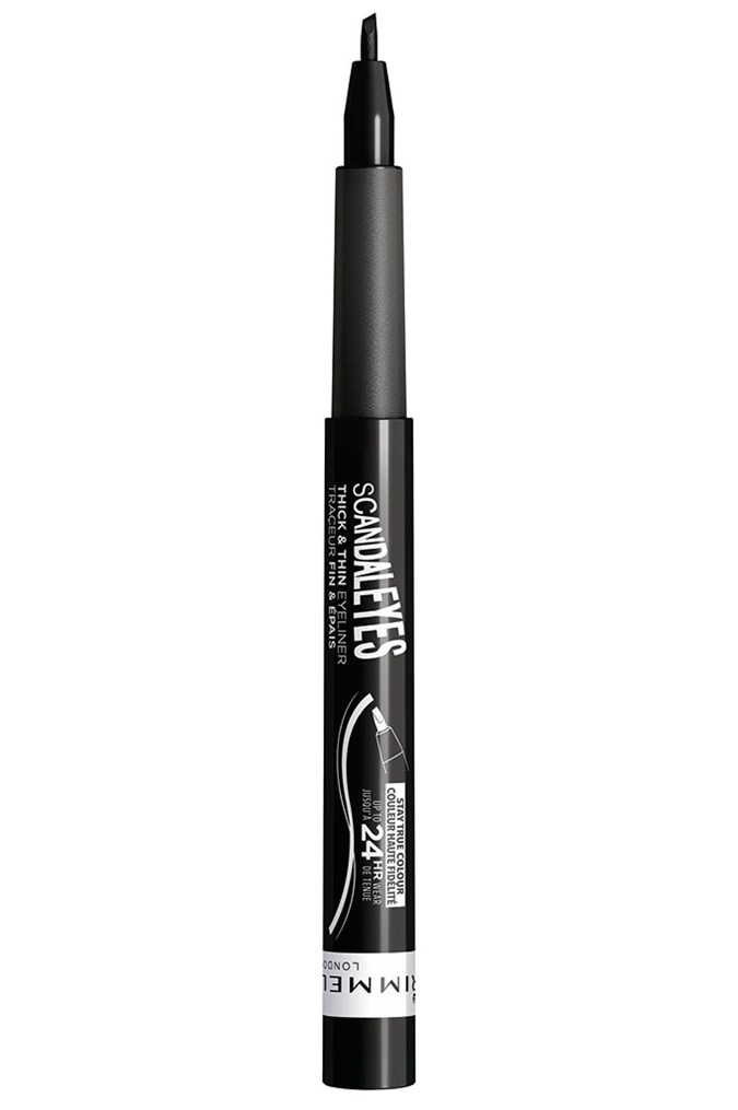 Whether you’re doing a subtle flick of liner or a bold winged eyeliner look, it’s important to use an eyeliner with the right tip for the job as it will make the application process much easier. Rimmel London ScandalEyes Precision Micro Eyeliner is great for thin lines as the soft fine tip can easily glide across your eyelid, whereas Rimmel London ScandalEyes Thick & Thin Eyeliner is perfect for drawing bigger architectural shapes, all thanks to its chiselled tip. Plus, they’re both waterproof and smudgeproof (as the ink dries almost instantly), so they won’t budge even hours after you put them on.