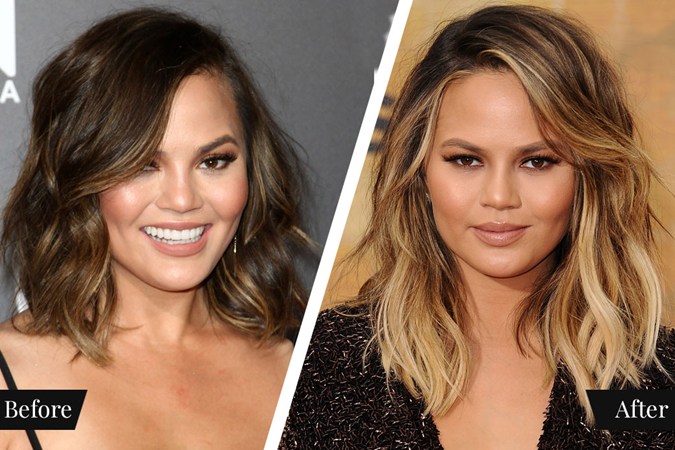 You’d be forgiven for thinking these two trends are one in the same but they’re actually quite different. Think of balayage as highlighting and ombré as colour blocking. “Balayage is more about dimension and creating a natural, gradual feel of lightness,” says Hubbard, while “Ombré is deeper at the roots, melting into more of a heavier contrast of light and dark. Ombré can also be created with pastel tones and bright colours.” Sombre is another colouring term, which is short for soft ombré and is a more subtle in-between version of the two. As a reference, here’s Chrissy Teigen sporting the ombré trend: