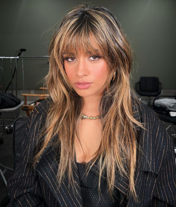 If you thought a wolf cut was better suited to short and mid-length hair, then you can think again. Camila Cabello’s hair stylist, Dimitris Giannetos, utilised the principles of the edgy cut to add body and movement to the 25-year-old’s honey blonde highlighted strands. And in Giannetos’ own words, the result is “fire”.