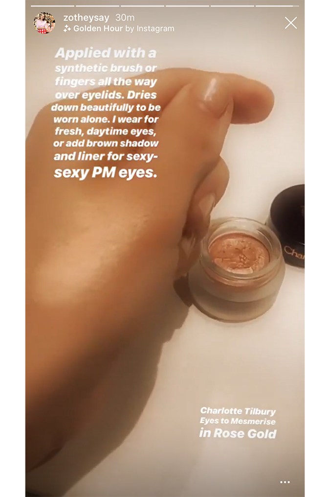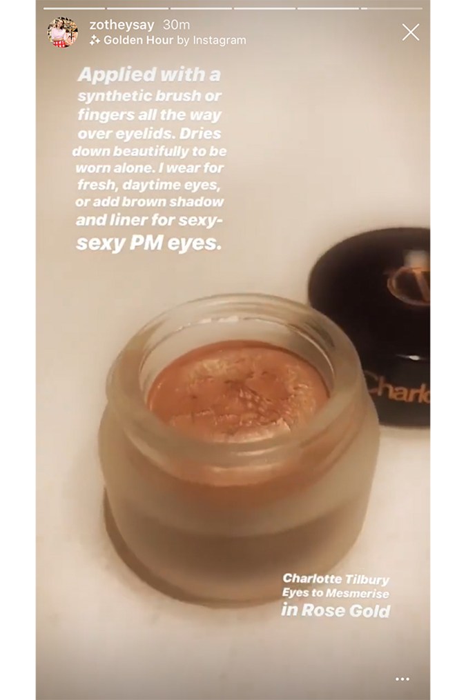 Her last recommendation is the Charlotte Tilbury Eyes to Mesmerise Cream Shadow in Rose Gold, which is easy to apply and can be worn for a myriad of occasions. “Applied with a synthetic brush or fingers all the way over the eyelids. Dries down beautifully to be worn alone. I wear for fresh, daytime eyes or add brown shadow and liner for sexy-sexy PM eyes.”